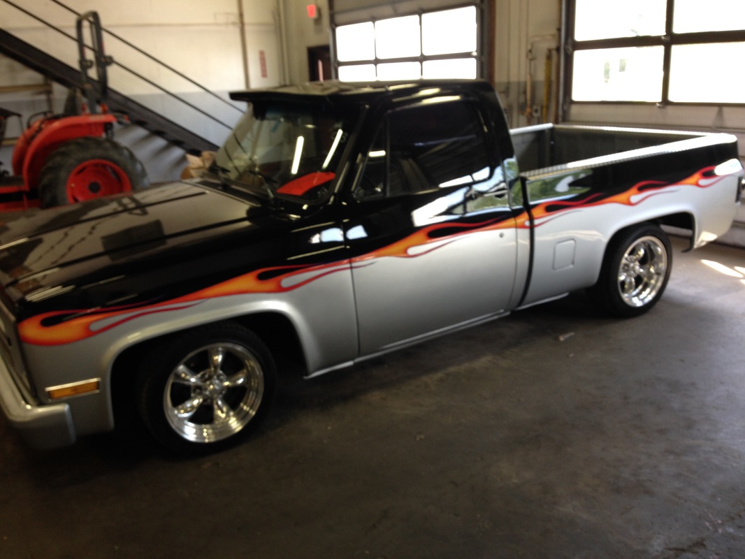 1985 Chevy Custom Shortbed 305 V-8, lowered, custom interior, custom paint & graphics, auto, a/c,new American racing wheels great quality at a low price $12,900